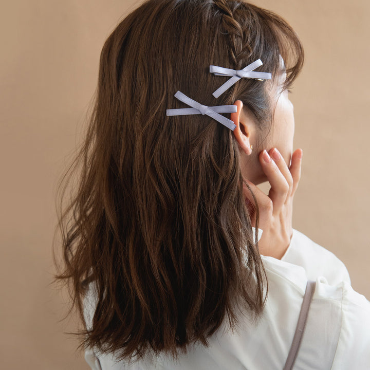 芭蕾的最主要的元素就是交叉的緞帶與蝴蝶結,只有戴上這款髮夾,就可以在你完成編髮時夾在左右兩側。低飽和的色彩讓可愛的同時也非常優雅~