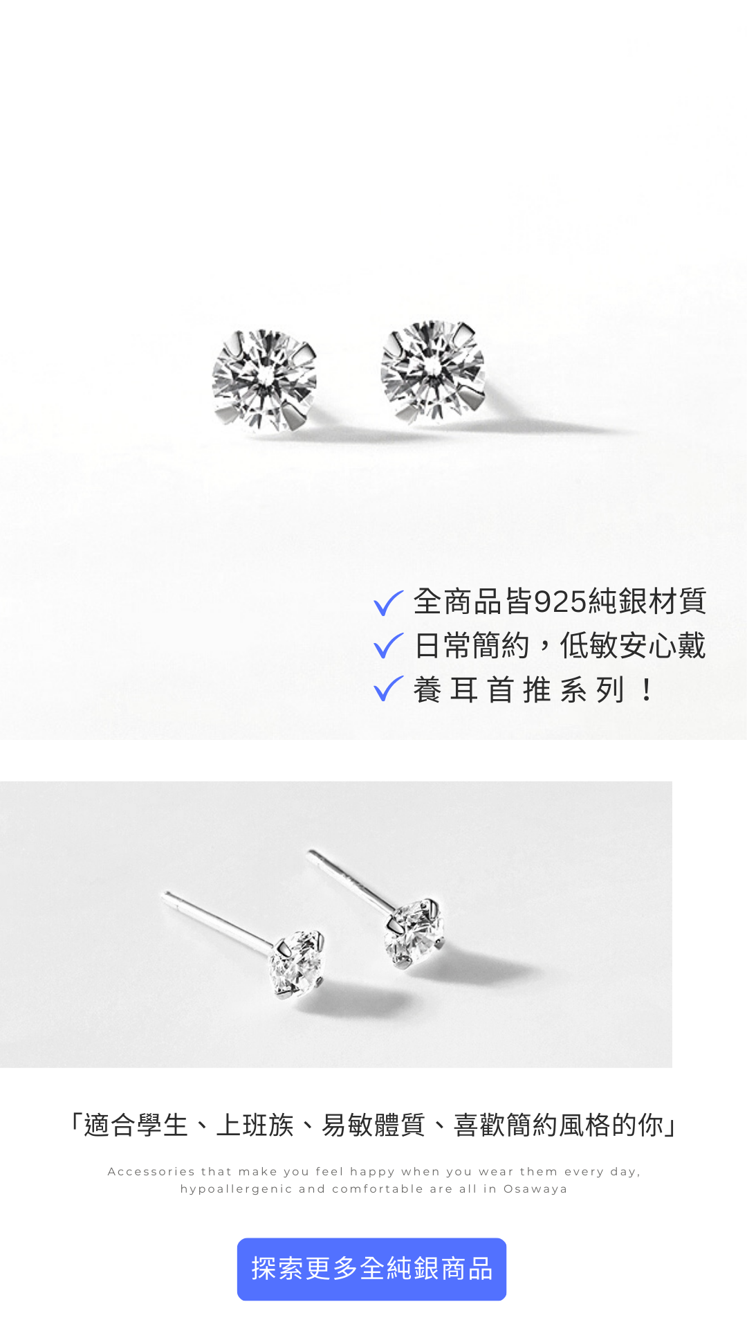 92.5%銀+7.5%的銅是國際公認的純銀標準。全純銀設計+小巧設計是日常配戴的百搭首選!