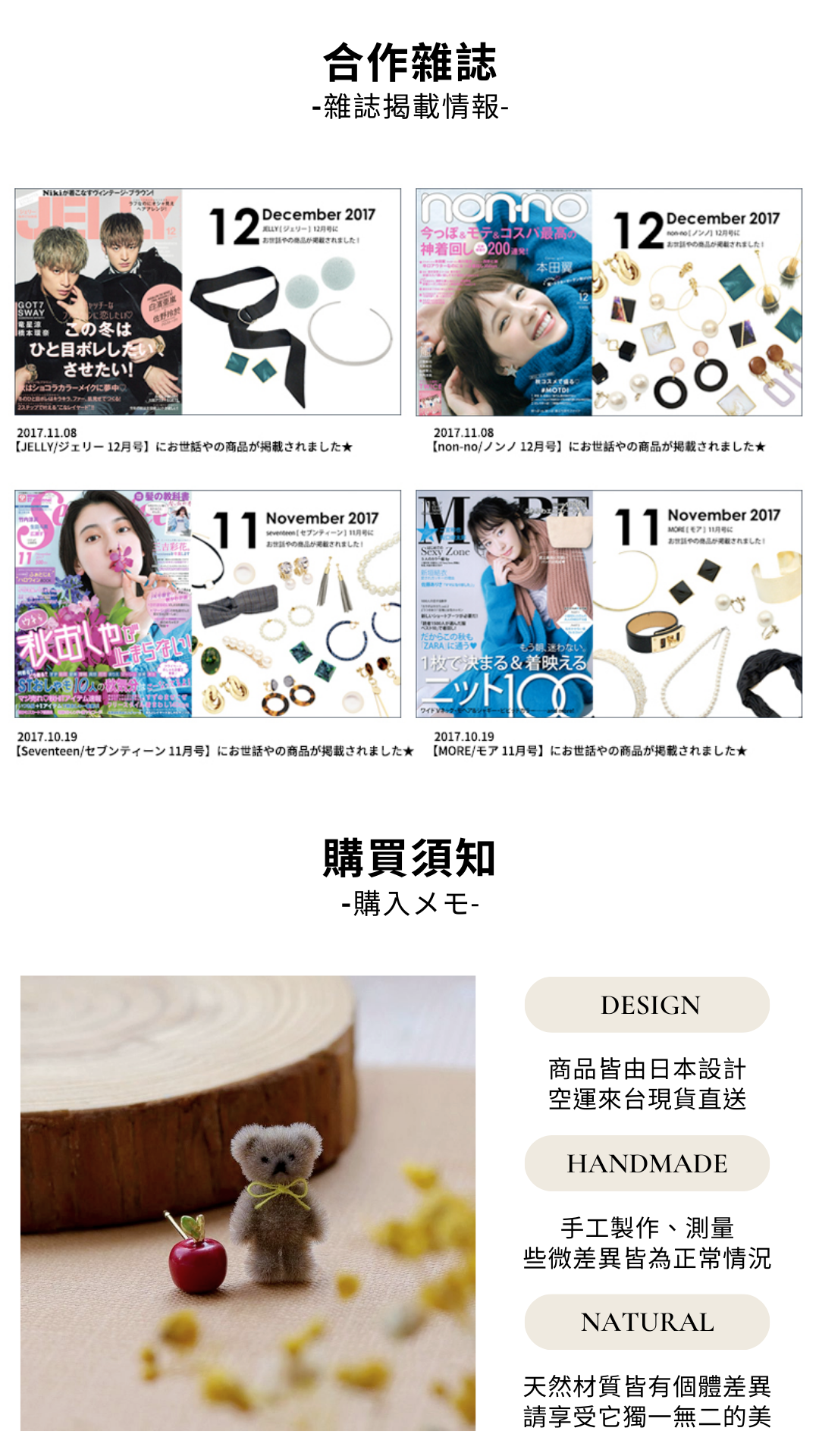 櫻花代表「質樸純潔的愛情」結合日本象徵性物品、花紋及文化做為飾品設計,將日本文化融入日常生活中,精美且獨一無二。
